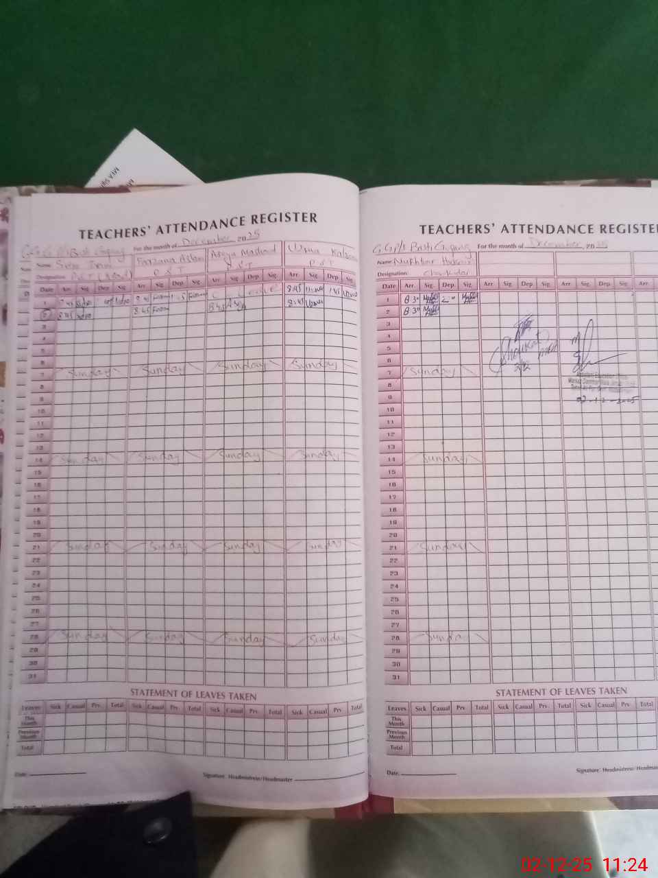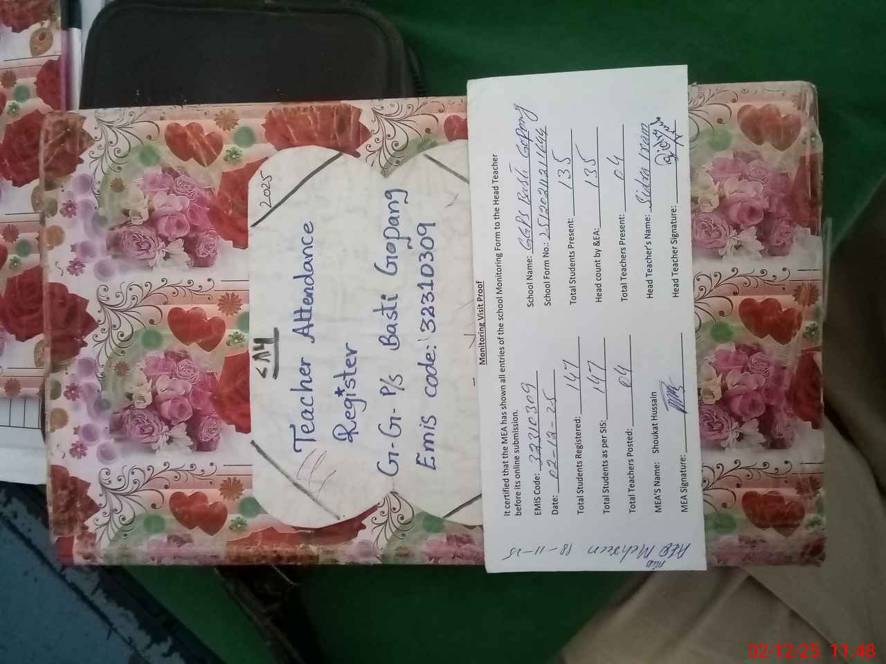 | Attendance Register | Head Teacher | MEA with School | Visit Proof |