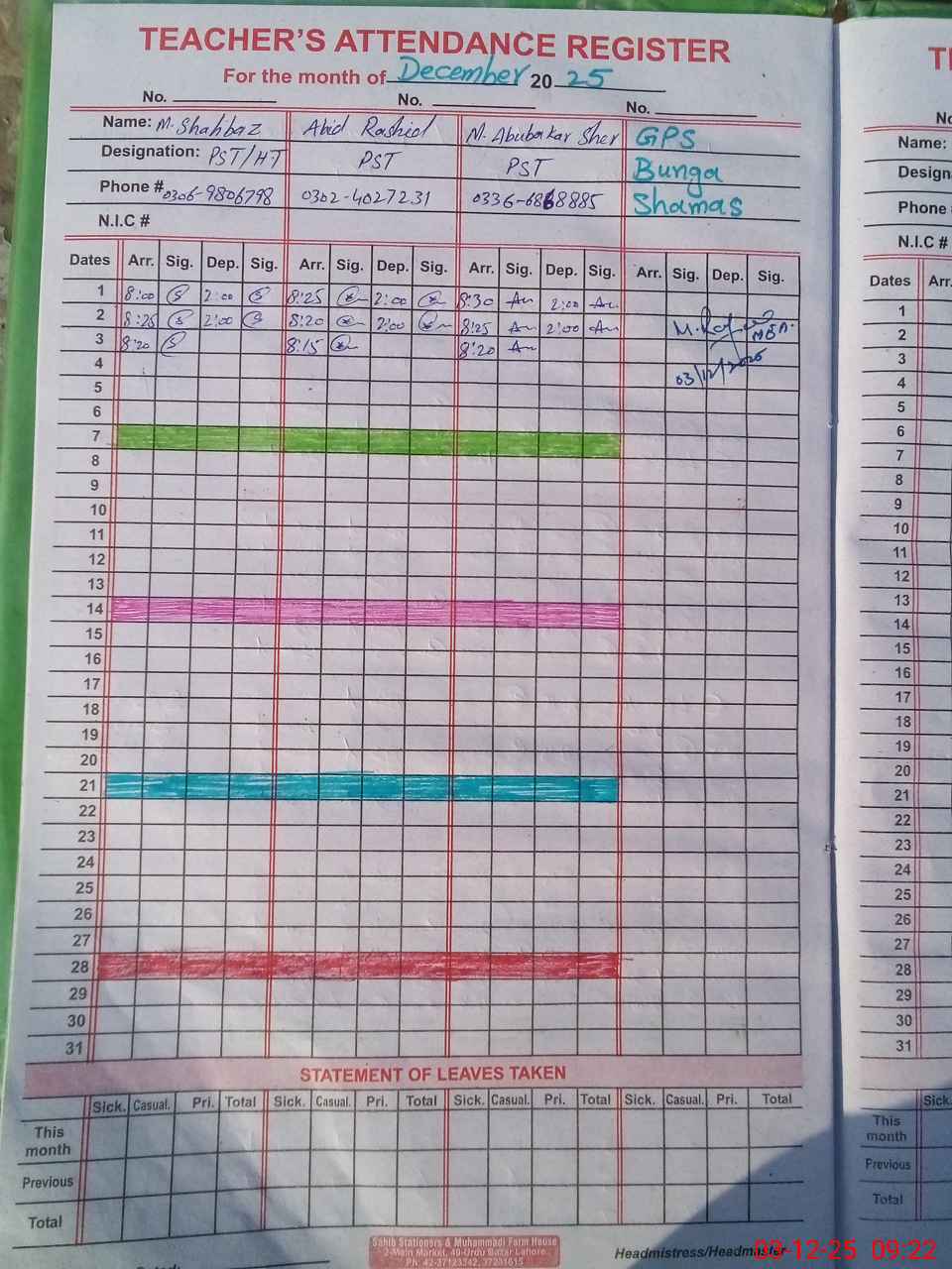| Name: Mu**** Sh**** Designation: (School Headmaster's/Headmistress's) PST Phone/Cell Number: 03**** |