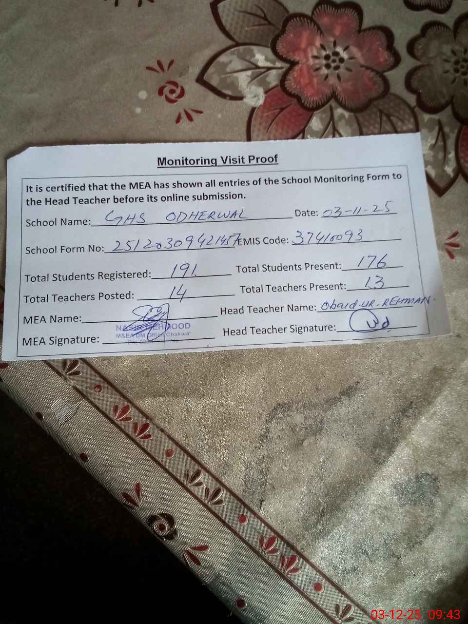 | EMIS Code: 37410093 | Name of School: GHS OUDHERWAL | |||