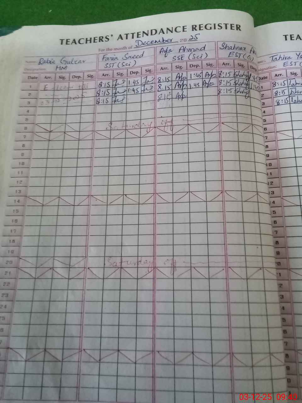 | 31**** | Ha**** Ab**** Ba**** | LAB ATTENDED | Regular | 0 | 0 | 0 | 0 | 0 | 0 | 0 | 0 | 0 | Casual |