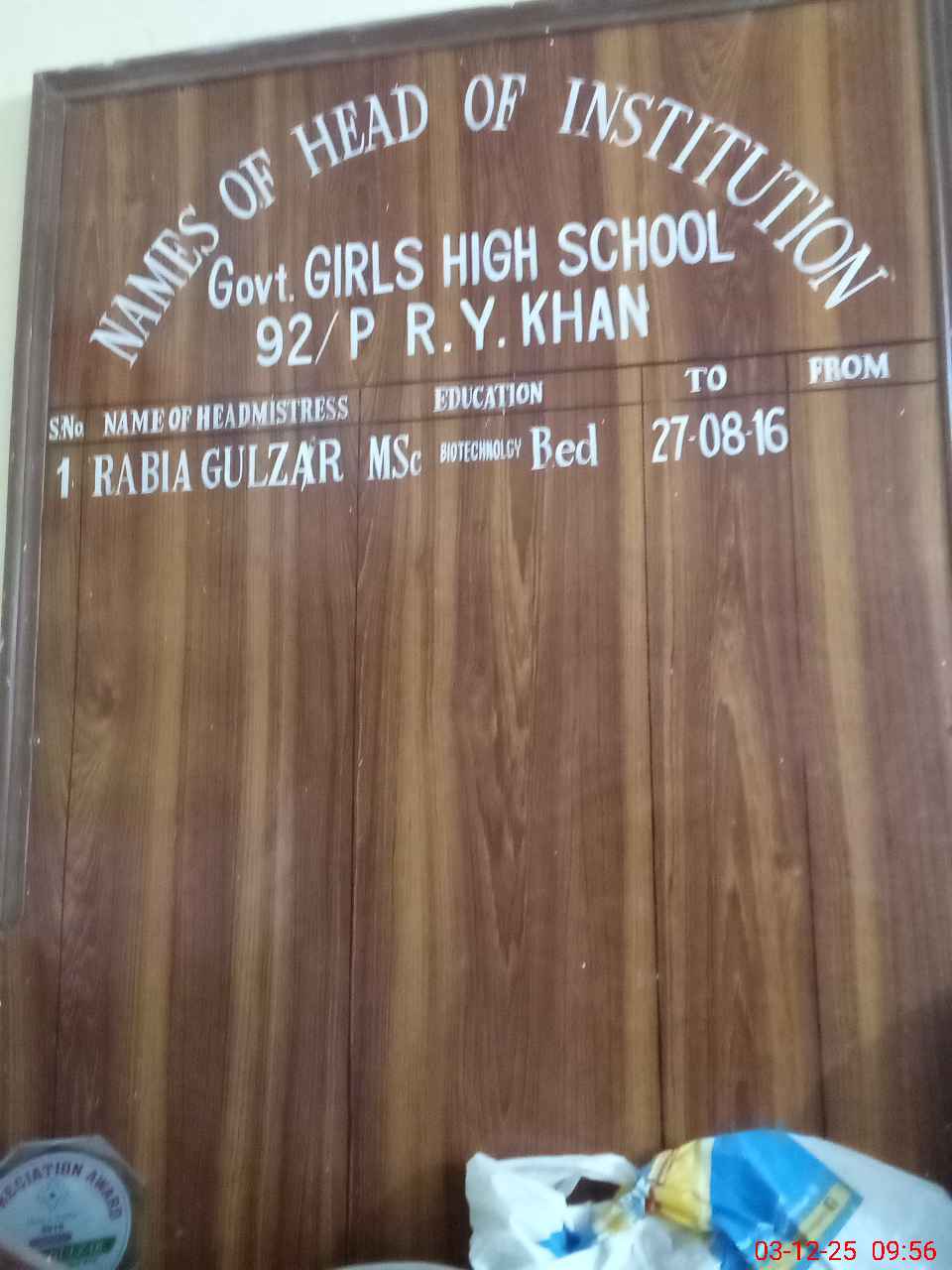 | EMIS Code: 31330119 | Name of School: GGHS CHAK NO. 92/P | |||