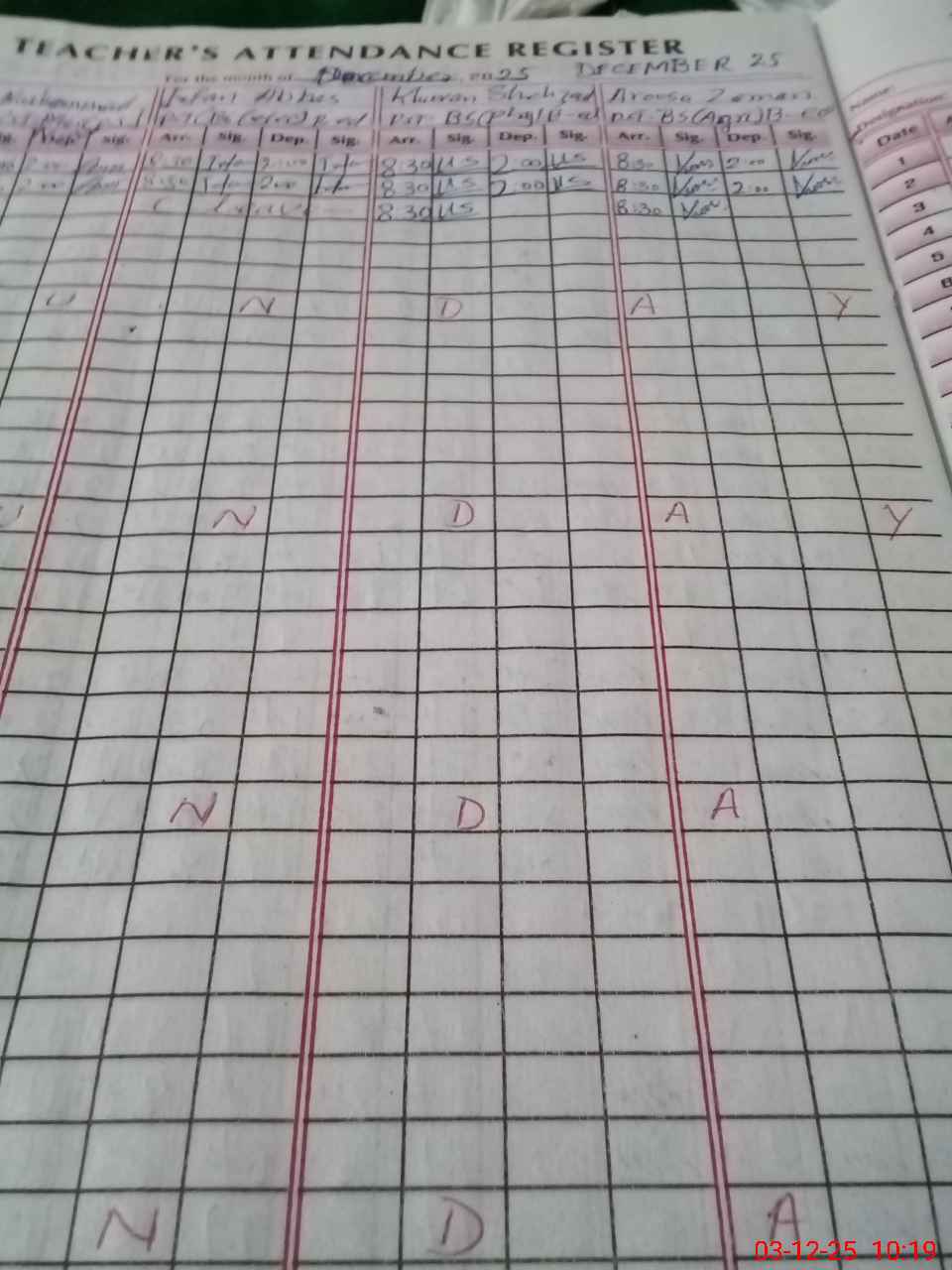 | CNIC | Full Name | Designation | R/C | Absence during last cal. month |