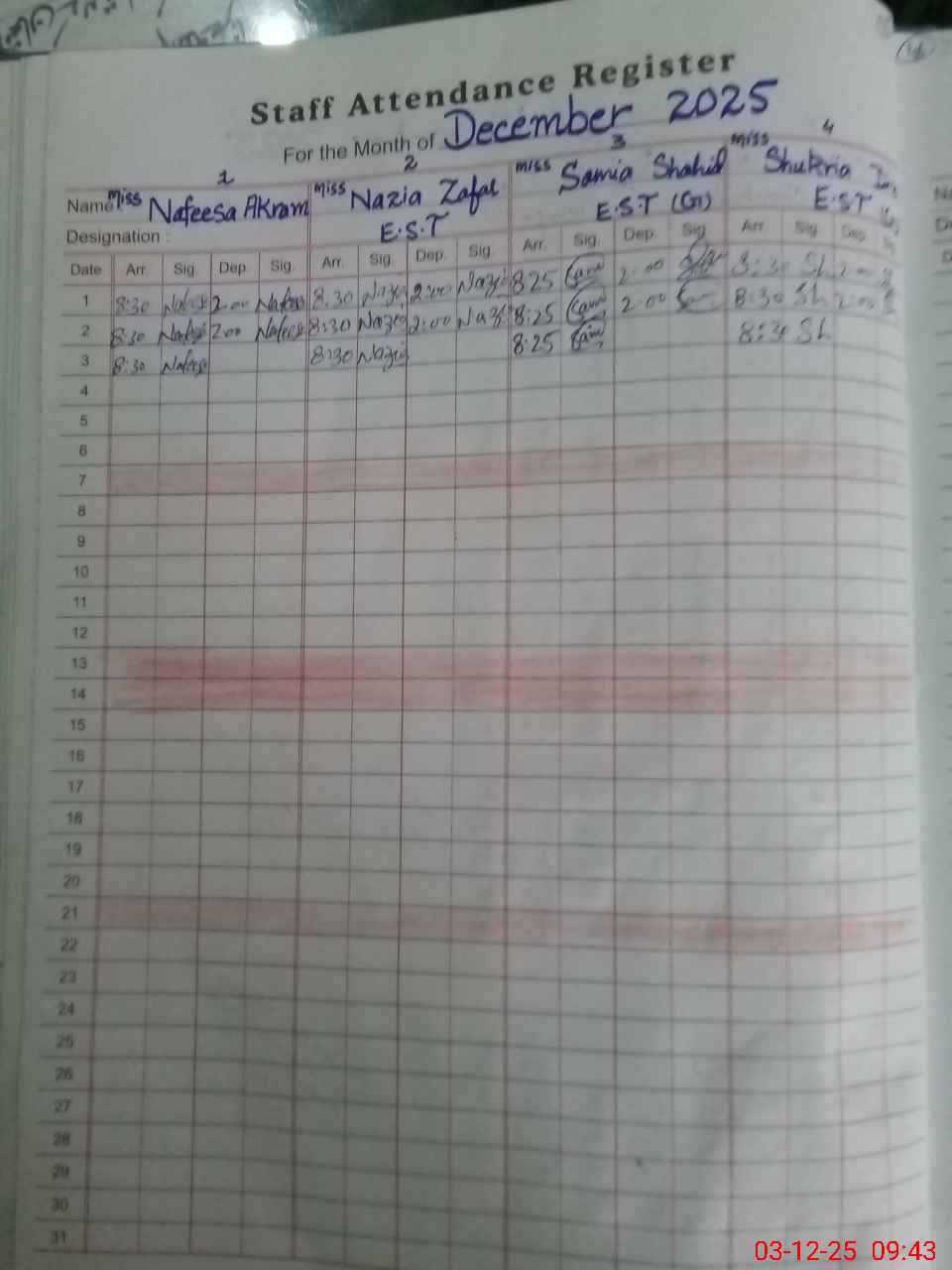 | Remarks (Use Separate Page if Required): Administrator visit in the school DEO 24th October 2025/Dy DEO on 4th February 2025 and AEO on 17th November 2025 and 26th November 2025. Census work completed and submitted. Assistant Education Officer visit regarding ECE. performa provided to school head performa filled and submitted on line. | |||||