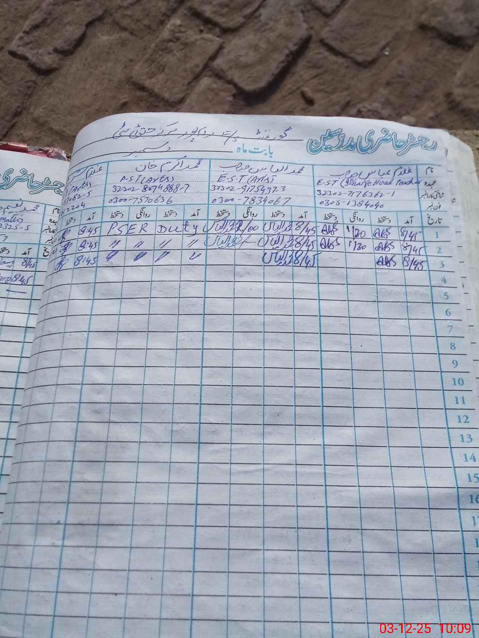 | CNIC | Full Name | Designation | R/C | Absence During Last Calender Month |