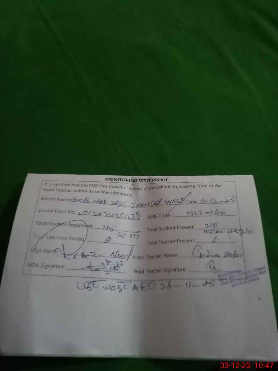 | Certified that this School was Inspected by the Undersigned MEA/DMO Today and the Information Stated Above is as Per Record. | |||||