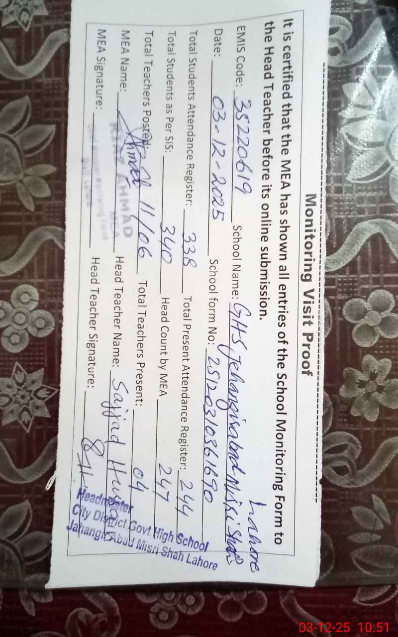 | EMIS Code: 35220619 | Name of School: GHS JAHANGIR ABAD MISRI SHAH (EX-MCL) | |||