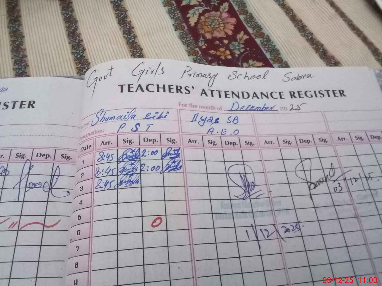 | Name: Sh**** Bi**** Designation: (School Headmaster's/Headmistress's) PST Phone/Cell Number: 03**** |