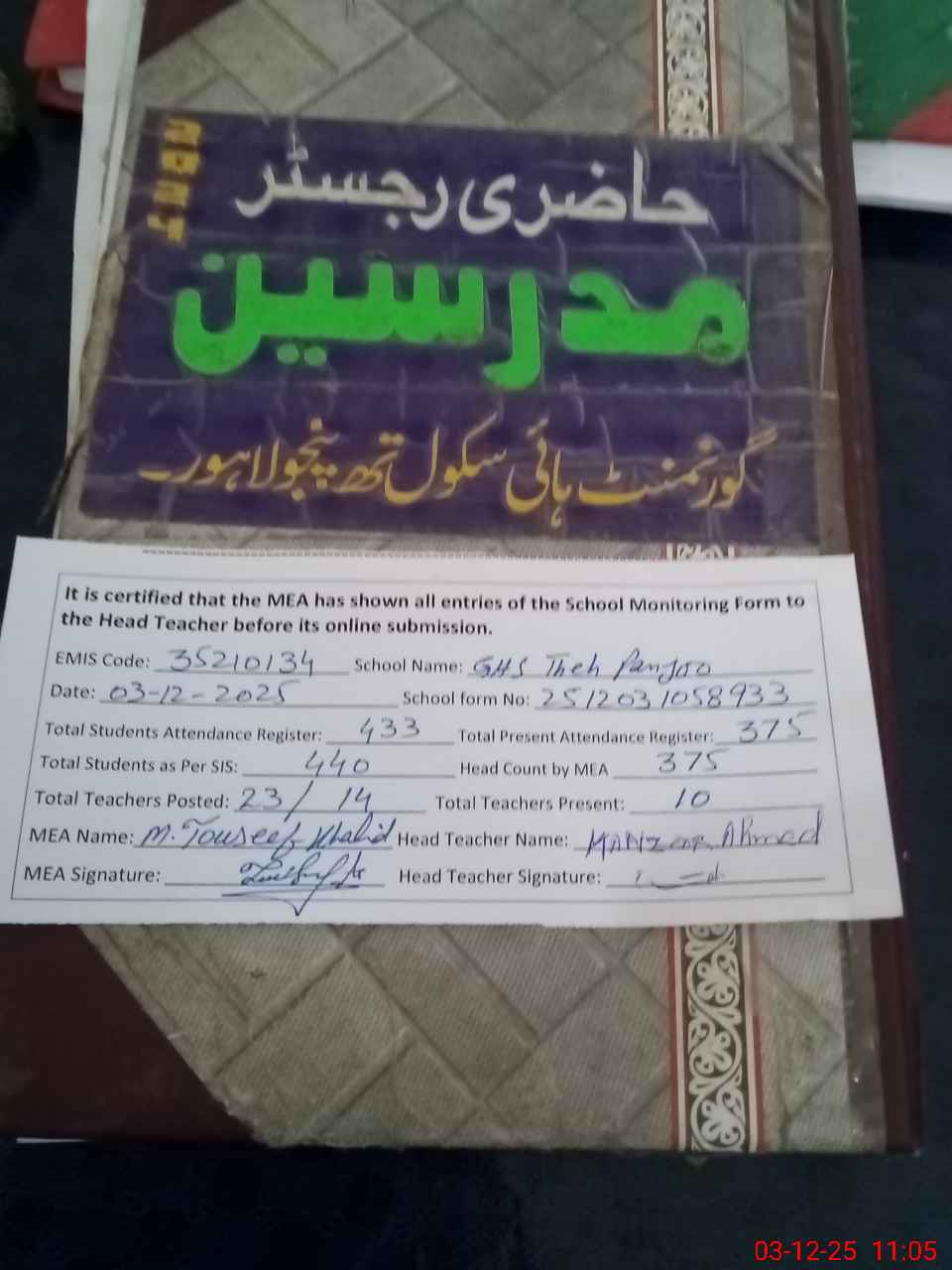 | EMIS Code: 35210134 | Name of School: GHS THEH PANJOO (Newly upgraded) | |||