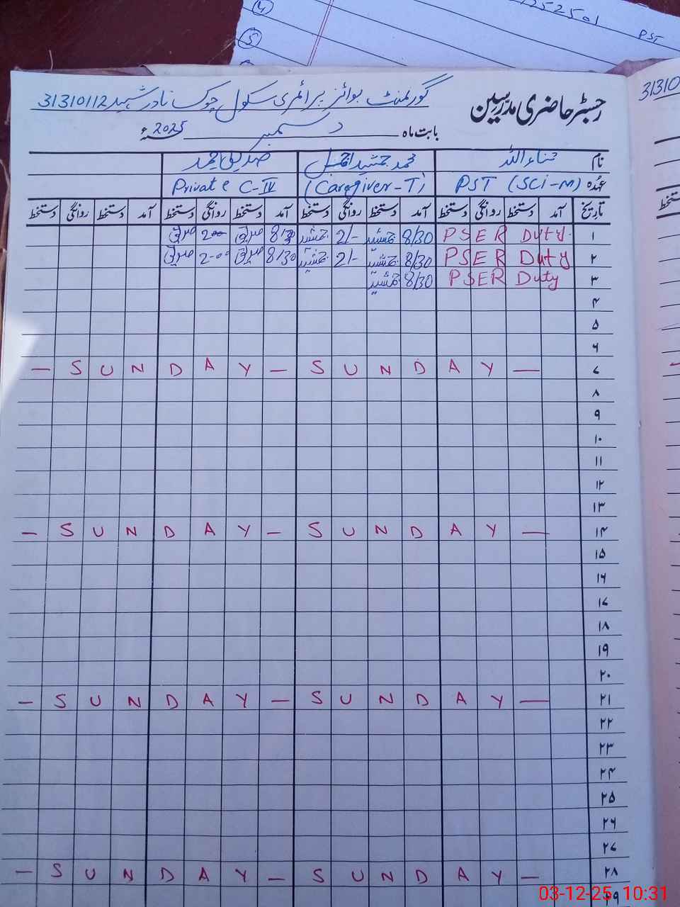 | EMIS Code: 31310112 | Name of School: GPS CHOWK NADIR SHAHEED (After Noon) | |||