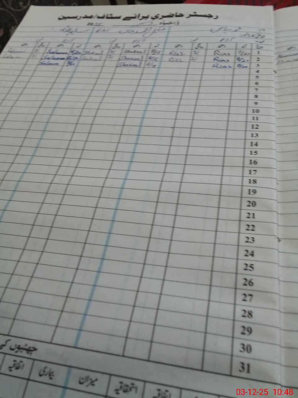 | CNIC | Full Name | Designation | R/C | Absence During Last Calender Month |