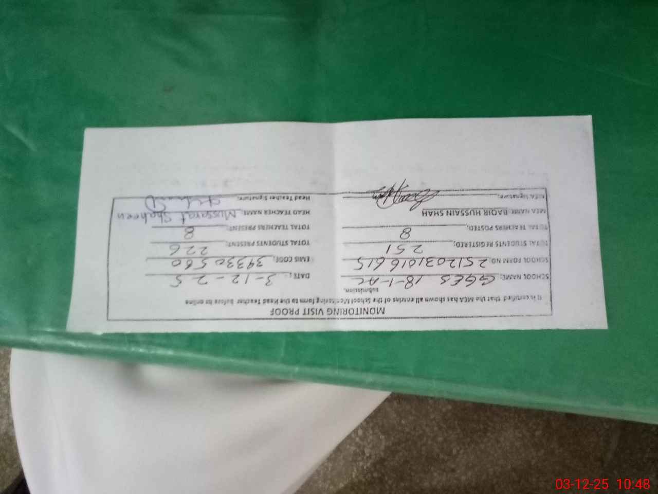 | Certified that this School was Inspected by the Undersigned MEA/DMO Today and the Information Stated Above is as Per Record. | |||||