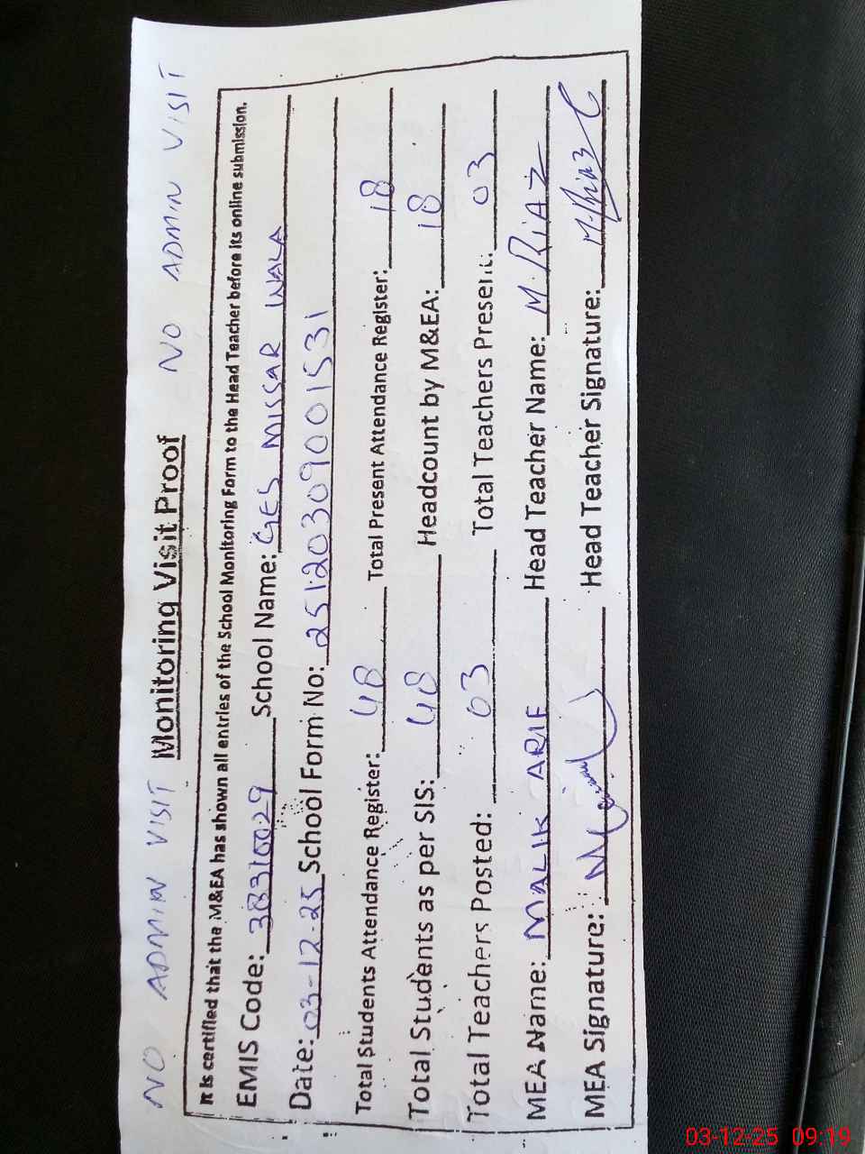 | EMIS Code: 38310029 | Name of School: GES MISSAR WALA | |||