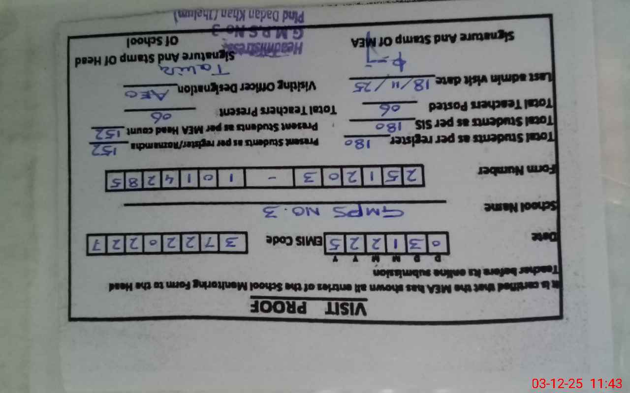 | EMIS Code: 37220227 | Name of School: GMPS NO. 3 P.D KHAN | |||