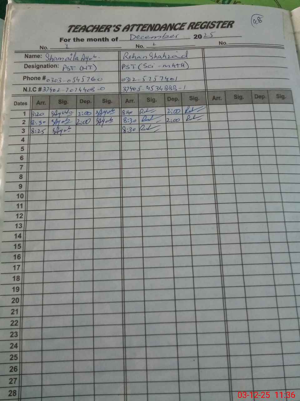| Name: Sh**** Ay**** Designation: (School Headmaster's/Headmistress's) PST Phone/Cell Number: 03**** |