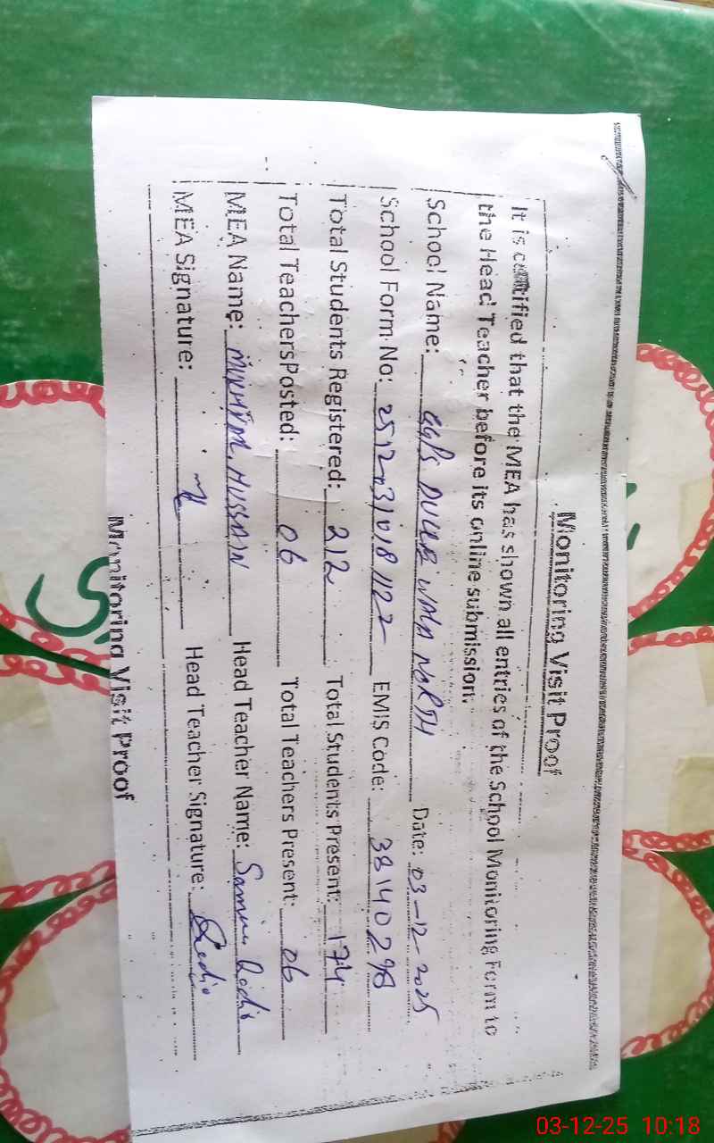 | Certified that this School was Inspected by the Undersigned MEA/DMO Today and the Information Stated Above is as Per Record. | |||||