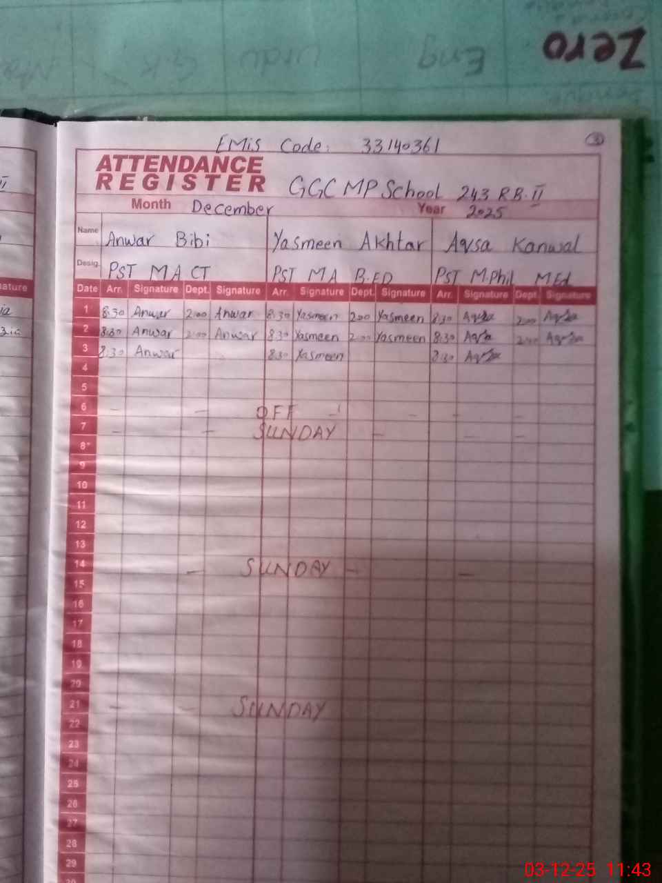 | EMIS Code: 33140361 | Name of School: GGCMS CHAK 243 RB | |||