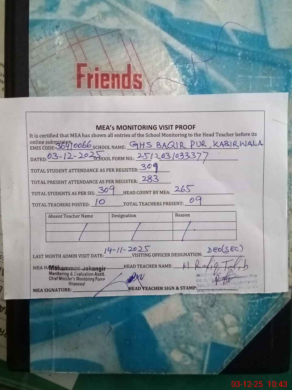 | EMIS Code: 36410066 | Name of School: GHS BAQIR PUR | |||