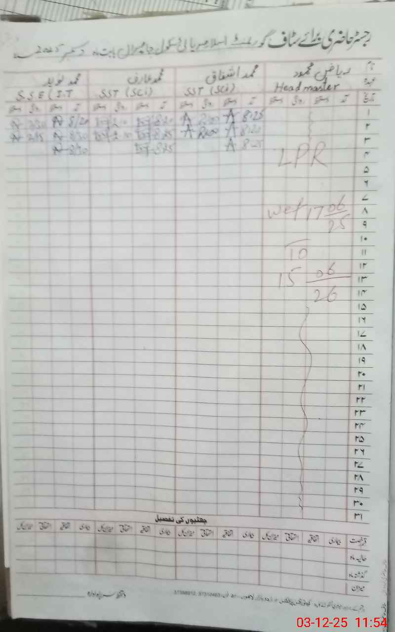| Remarks (Use Separate Page if Required): Head teacher Riaz Mahmood is on LPR since 17 June ,2025 | |||||
