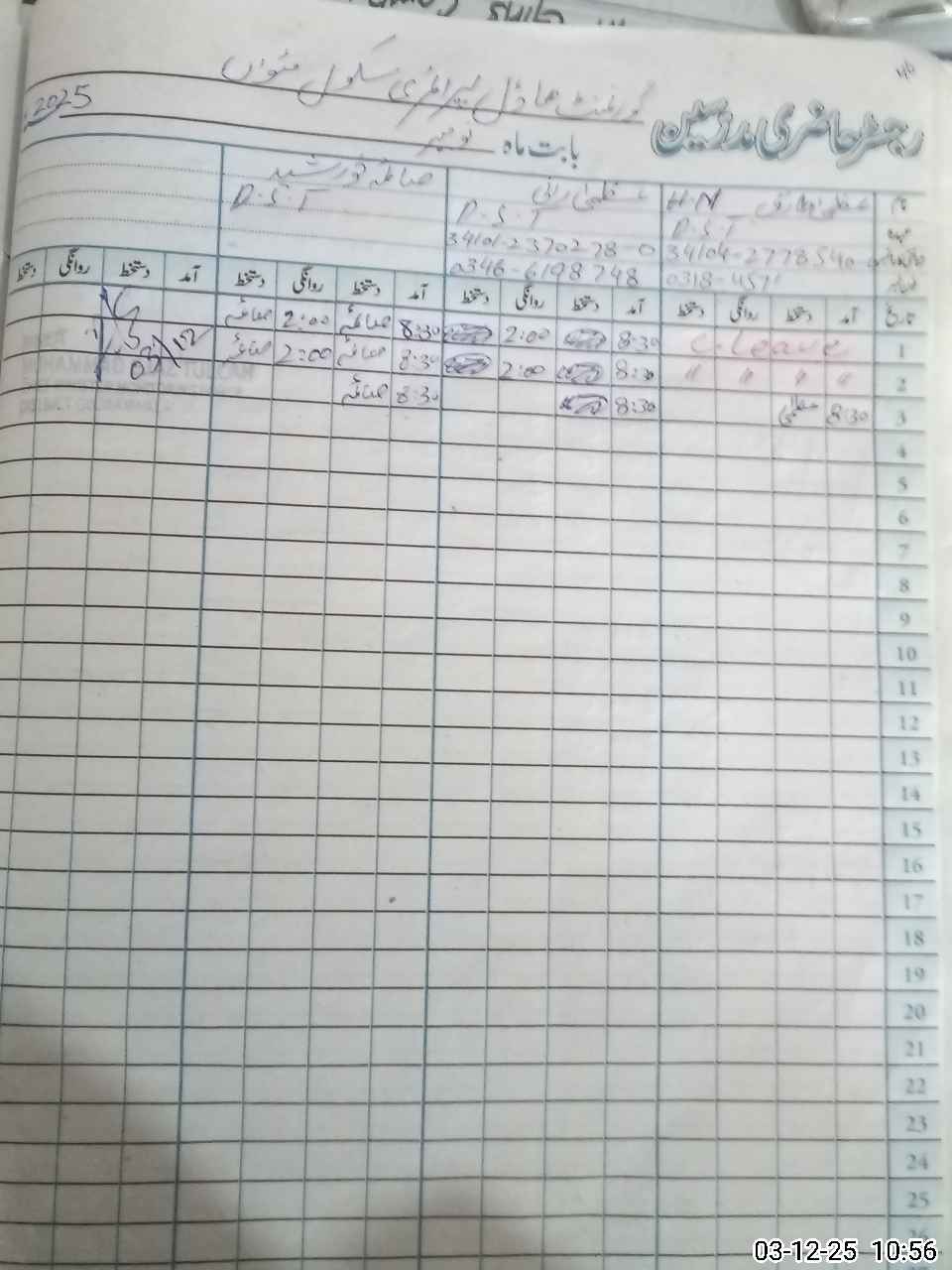 | Name: Uz**** Ta**** Designation: (School Headmaster's/Headmistress's) PST Phone/Cell Number: 03**** |