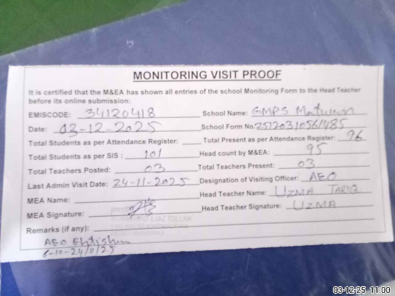| EMIS Code: 34120418 | Name of School: GMPS MATWAN | |||