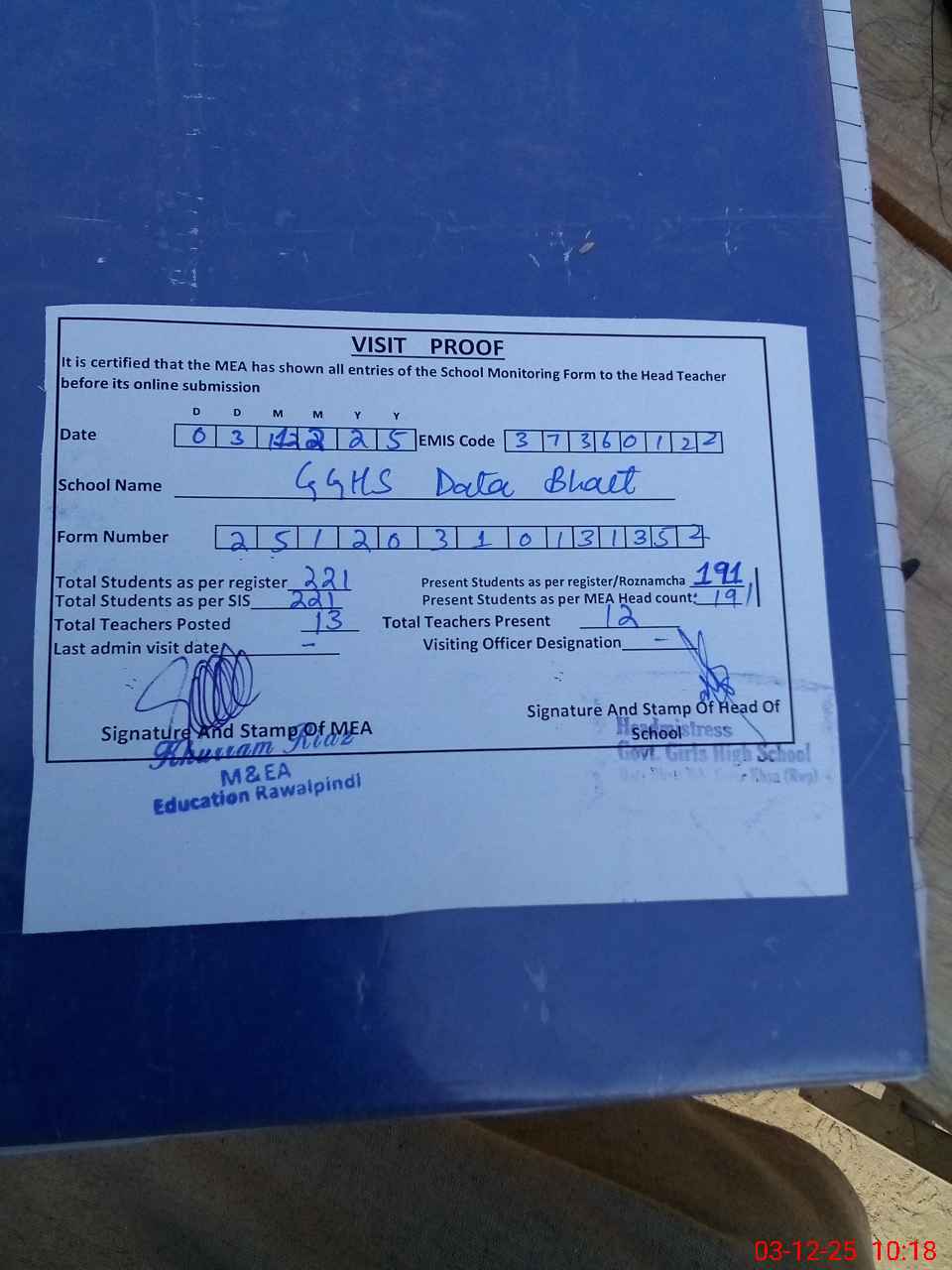 | EMIS Code: 37360122 | Name of School: GGHS DATA BHATT | |||