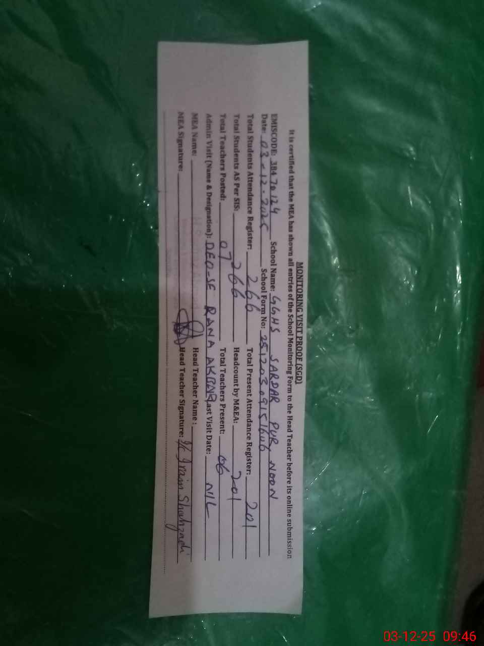 | EMIS Code: 38470124 | Name of School: GGHS SARDAR PUR NOON | |||