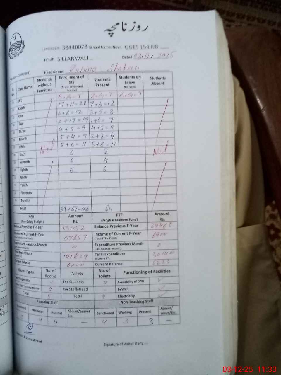 | EMIS Code: 38440078 | Name of School: GGES CHAK NO 159 NB | |||