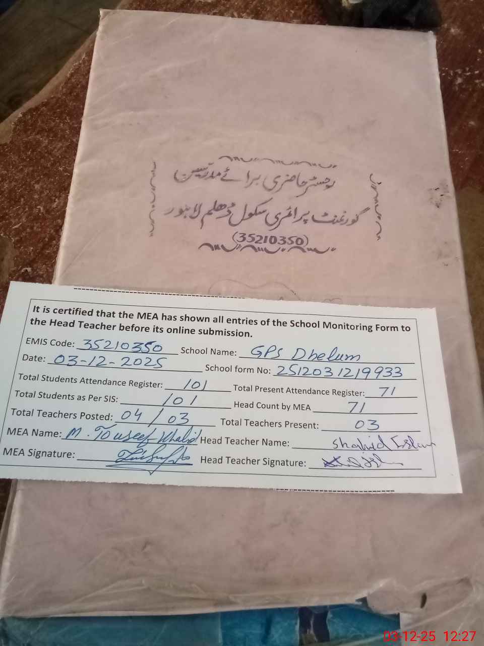 | EMIS Code: 35210350 | Name of School: GPS DHELUM | |||