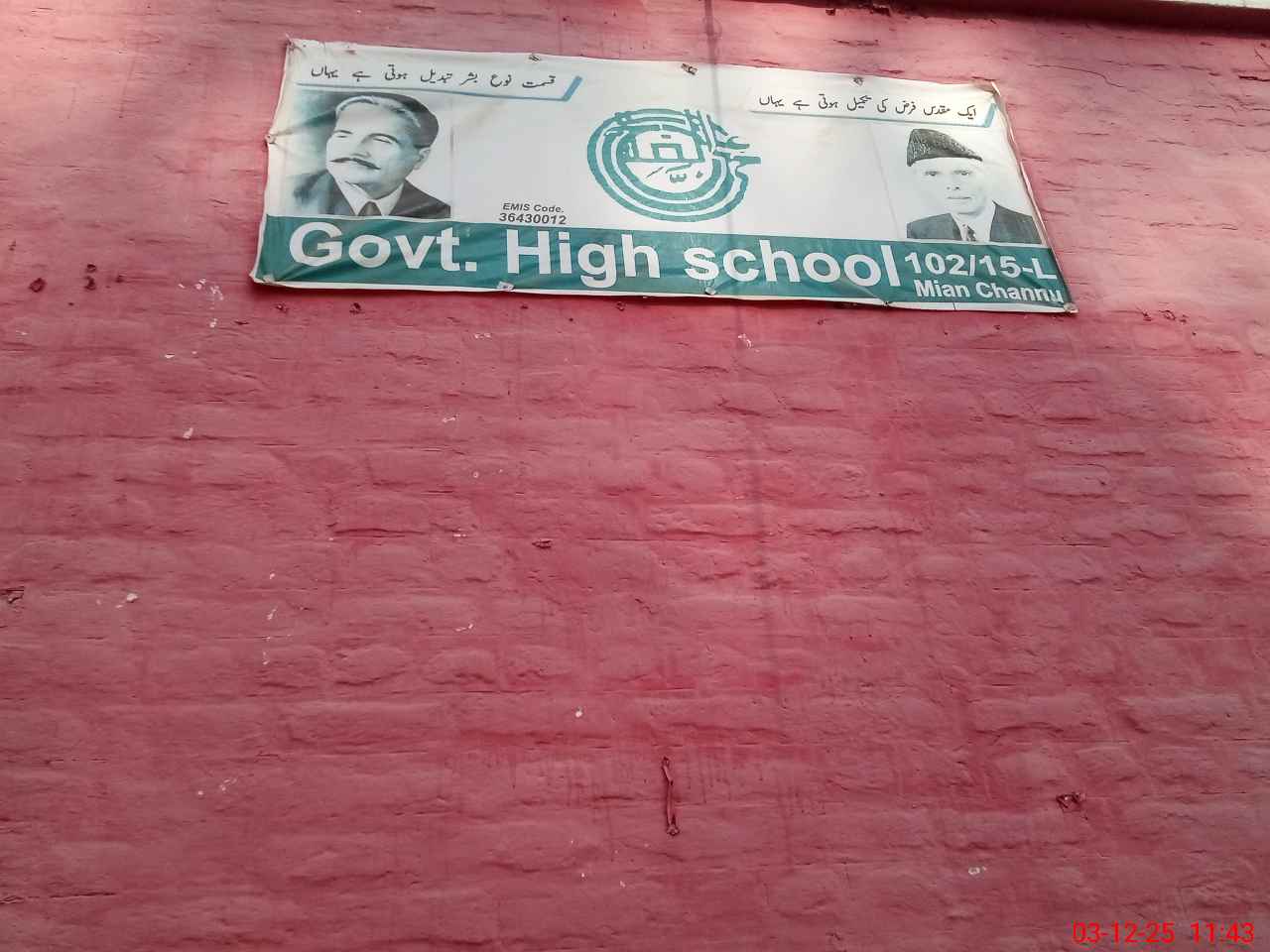 | EMIS Code: 36430012 | Name of School: GHS 102/15-L, MIAN CHUNNU | |||