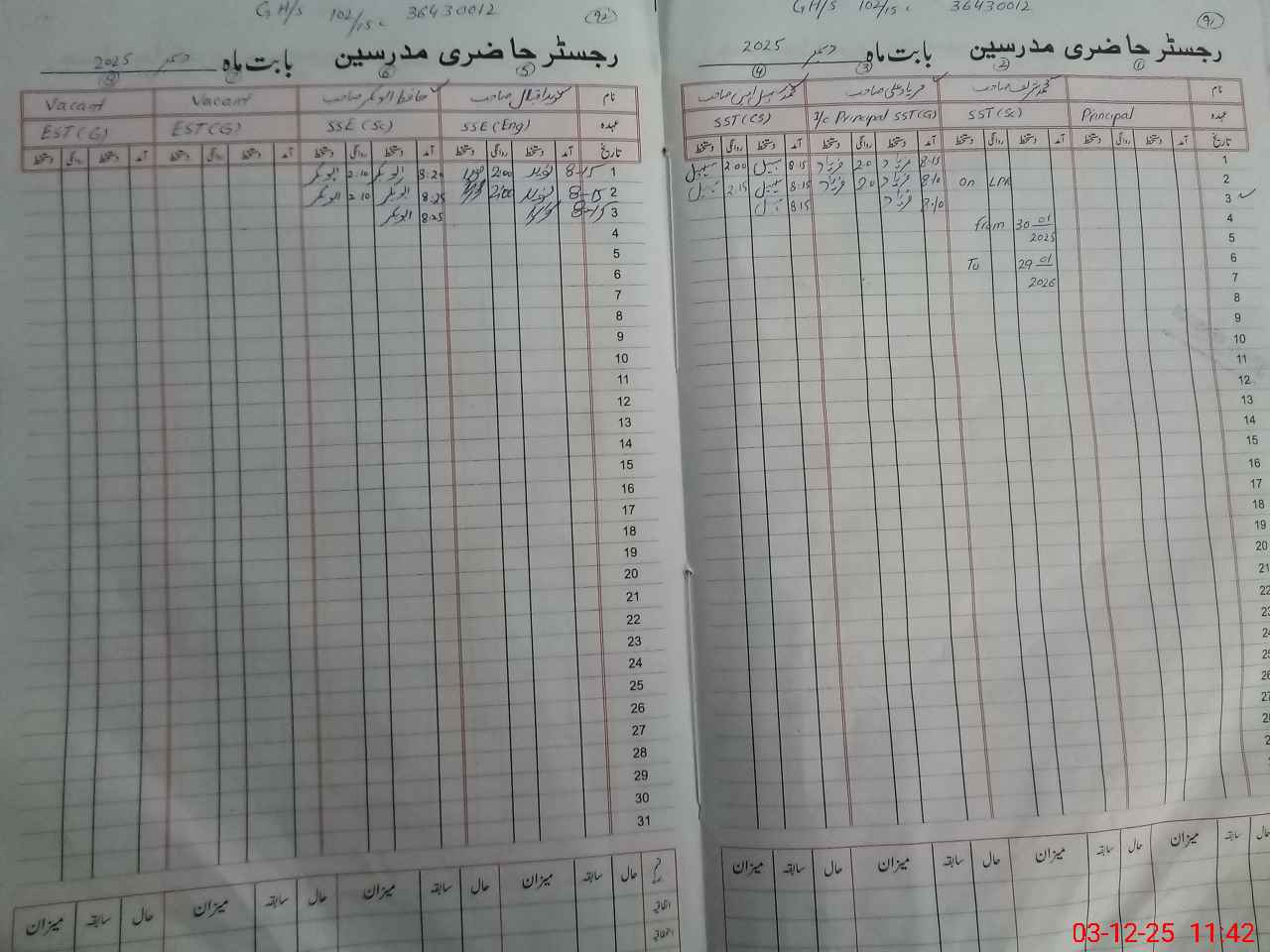 | Name: FA**** AL**** Designation: (School Headmaster's/Headmistress's) SST GENERAL Phone/Cell Number: 03**** |