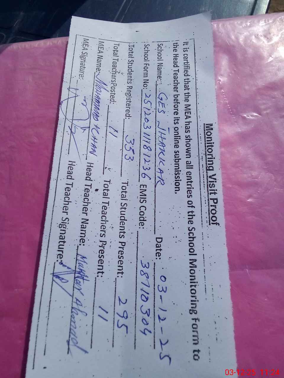 | EMIS Code: 38110304 | Name of School: GES JHAKKARR | |||