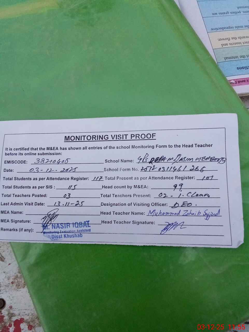 | EMIS Code: 38210405 | Name of School: GPS RAJA MUHAMMAD QASIM MEHBOOB SHAHEED | |||