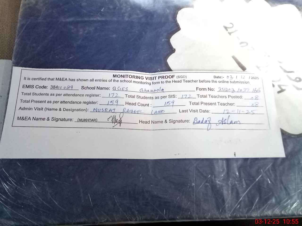 | EMIS Code: 38410089 | Name of School: GGES GHANOOLA | |||