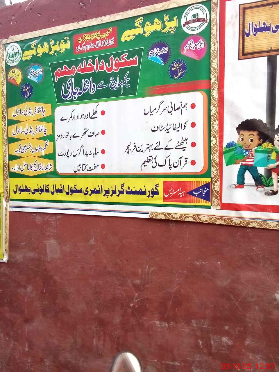 | EMIS Code: 38410489 | Name of School: GGPS IQBAL COLONY BHALWAL | |||