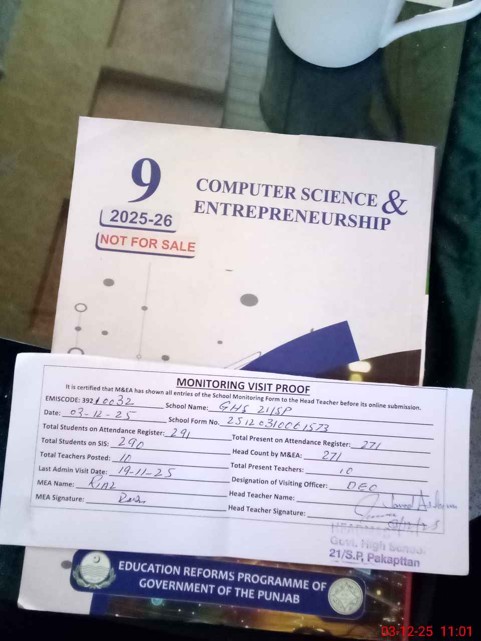 | EMIS Code: 39210032 | Name of School: GHS CHAK NO. 21/SP | |||