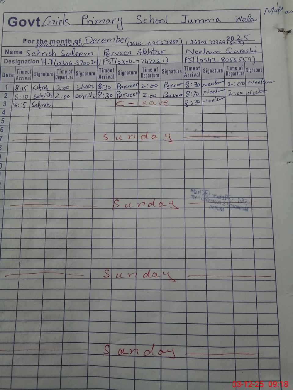 | Name: Se**** Sa**** Designation: (School Headmaster's/Headmistress's) PST Phone/Cell Number: 03**** |