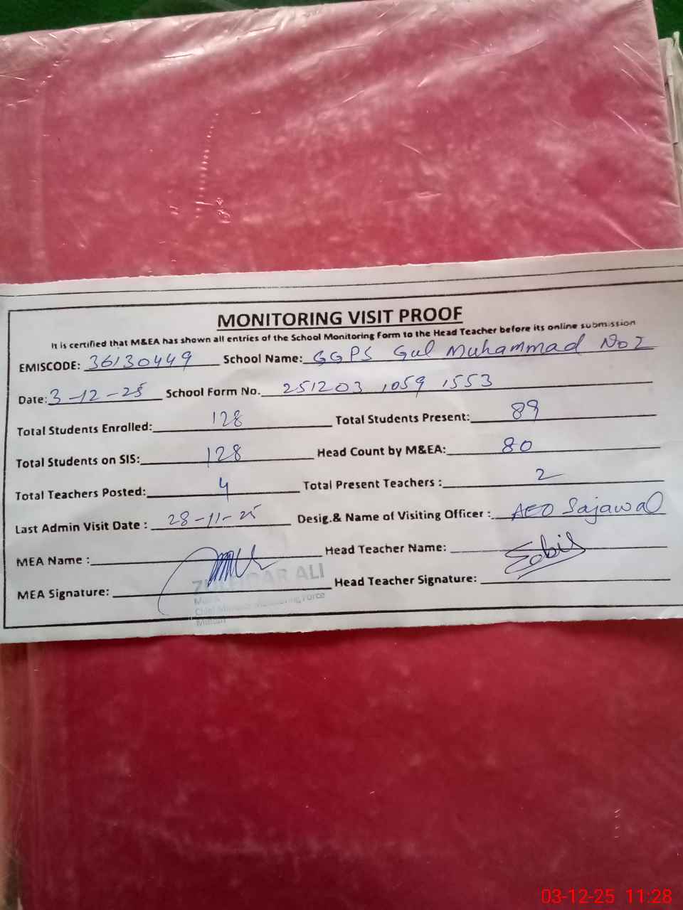 | EMIS Code: 36130449 | Name of School: GGPS GUL MUHAMMAD NO 2 MULTAN | |||