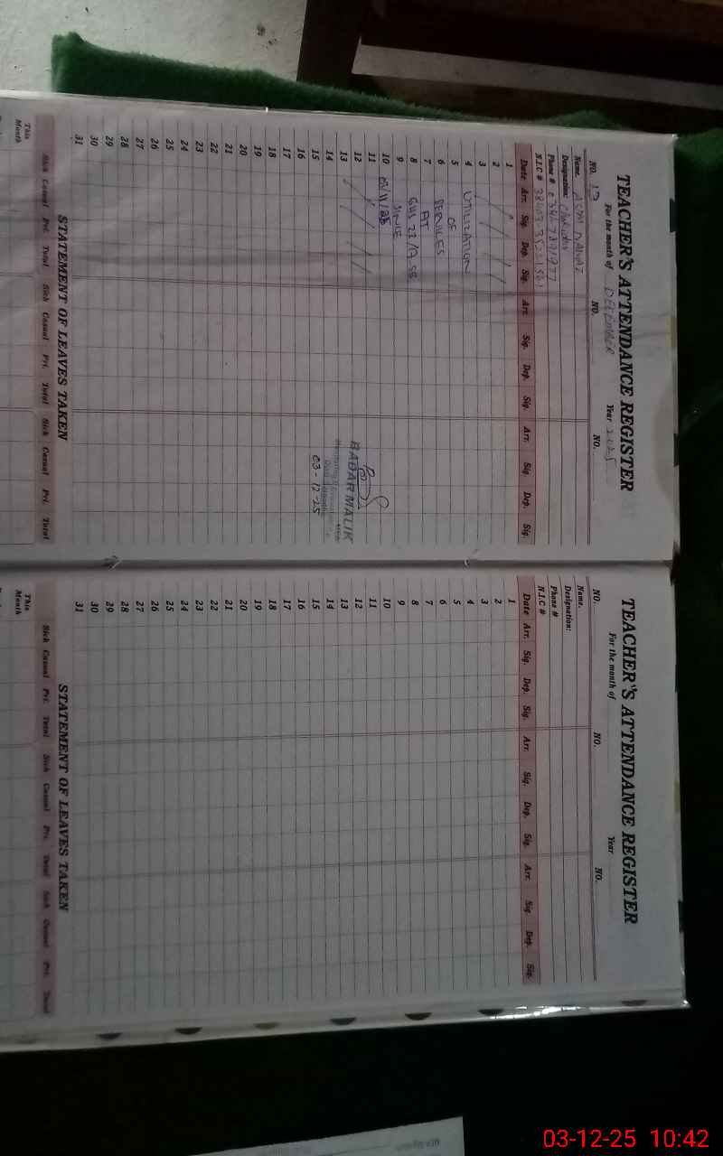 | Name: MU**** AW**** Designation: (School Headmaster's/Headmistress's) S.S.T.(SCI) Phone/Cell Number: 03**** |