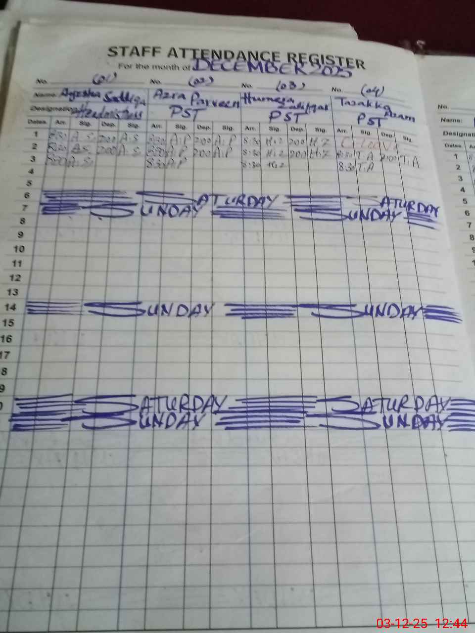 | Name: Ay**** Si**** Designation: (School Headmaster's/Headmistress's) PST Phone/Cell Number: 03**** |