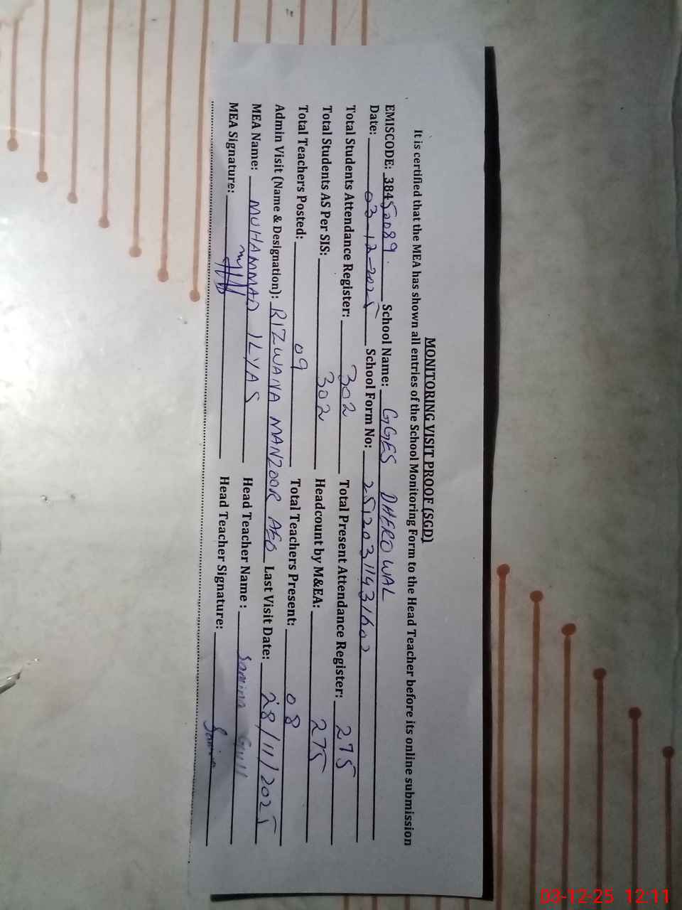 | EMIS Code: 38450089 | Name of School: GGES DHERO WAL | |||