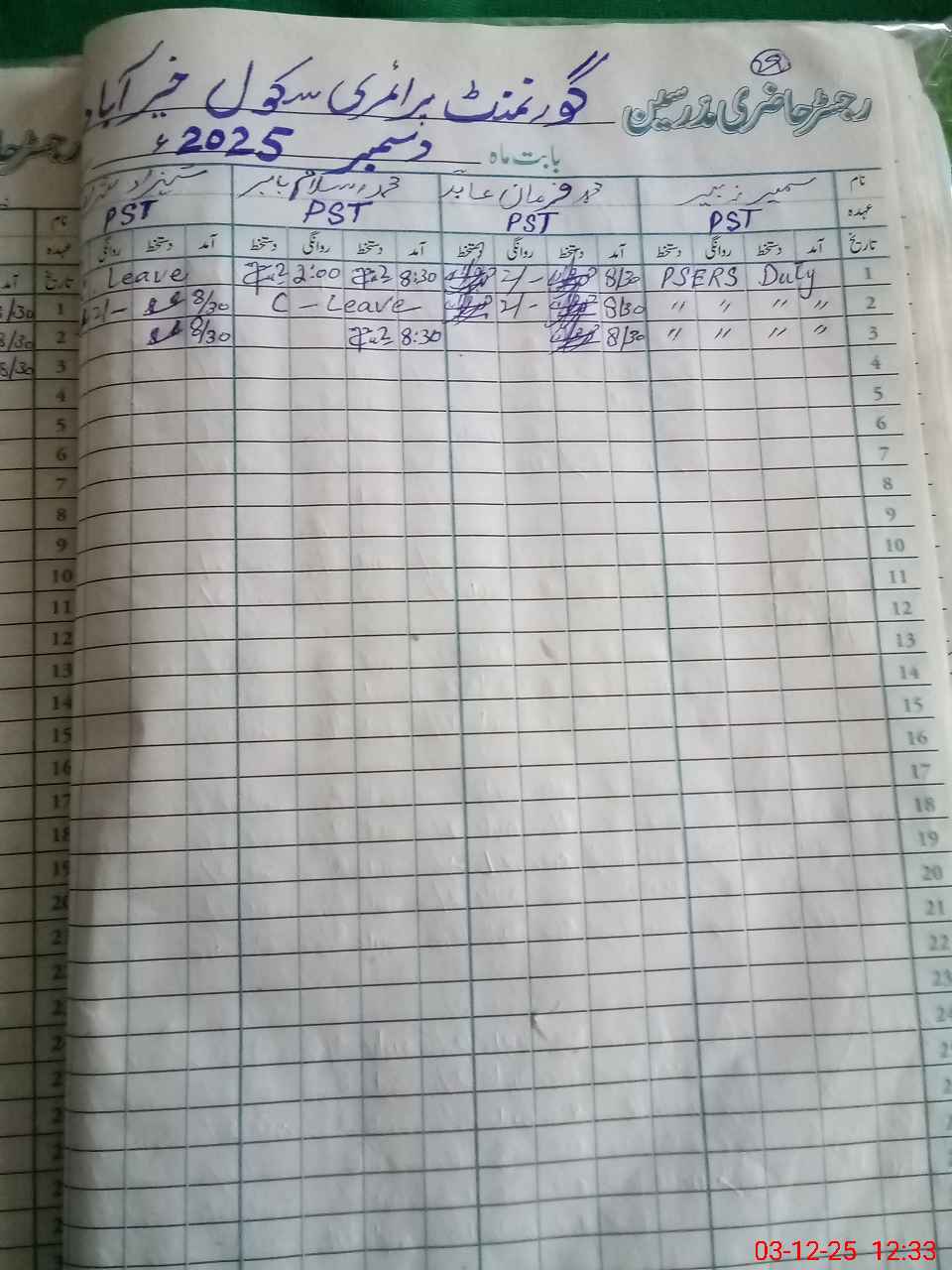 | CNIC | Full Name | Designation | R/C | Absence During Last Calender Month |