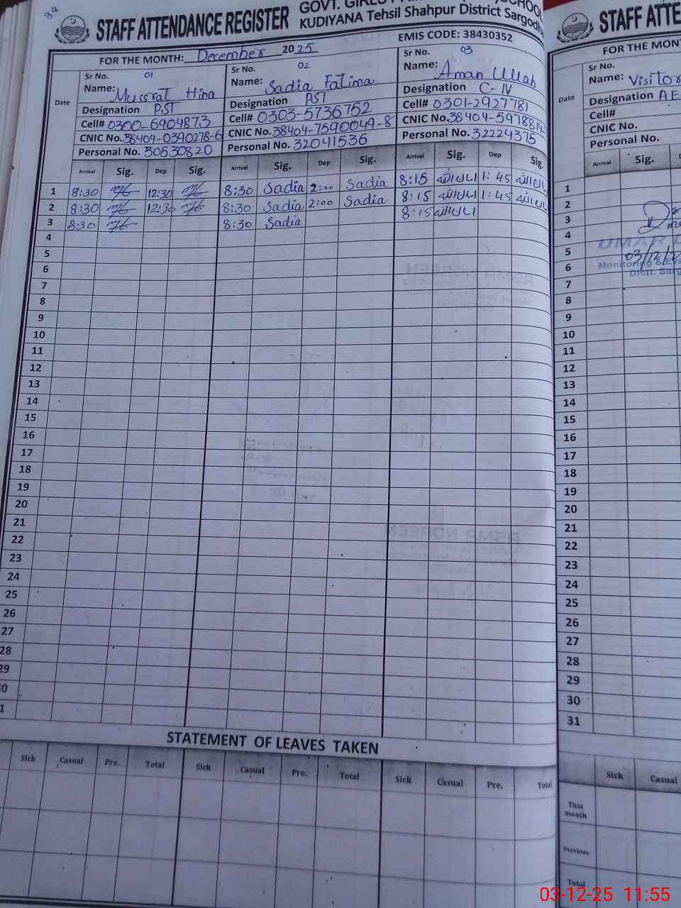 | Name: MU**** HI**** Designation: (School Headmaster's/Headmistress's) PST Phone/Cell Number: 03**** |