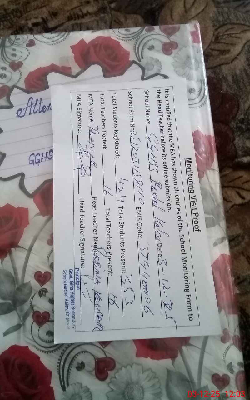 | EMIS Code: 37440006 | Name of School: GGHSS BUCHAL KALAN | |||