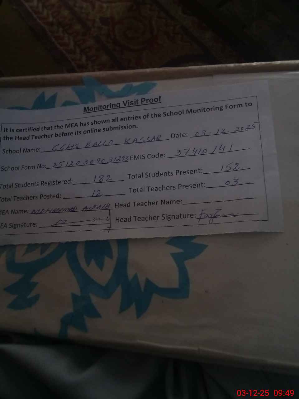 | EMIS Code: 37410141 | Name of School: GGHS BALLO KASSAR | |||