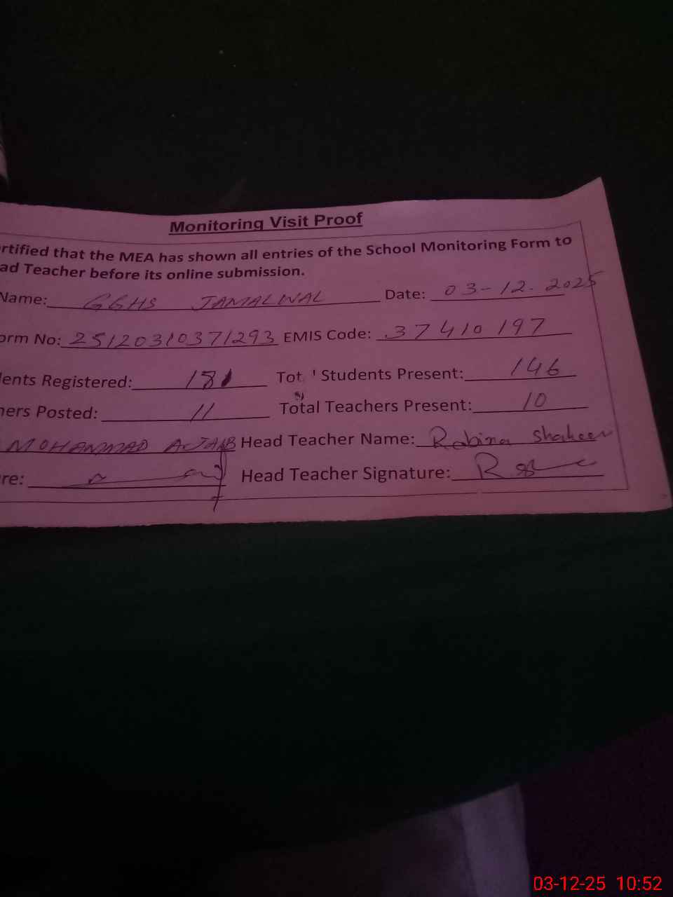 | EMIS Code: 37410197 | Name of School: GGHS JAMALWAL | |||