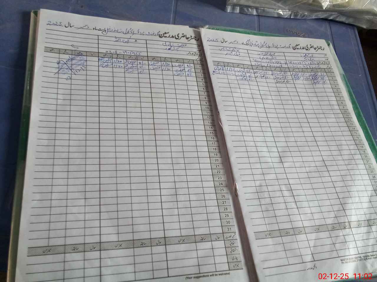 | CNIC | Full Name | Designation | R/C | Absence During Last Calender Month |