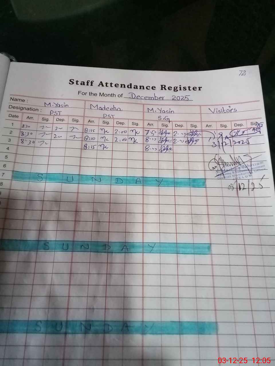 | Sr.No. | Visit Date | Designation | ||