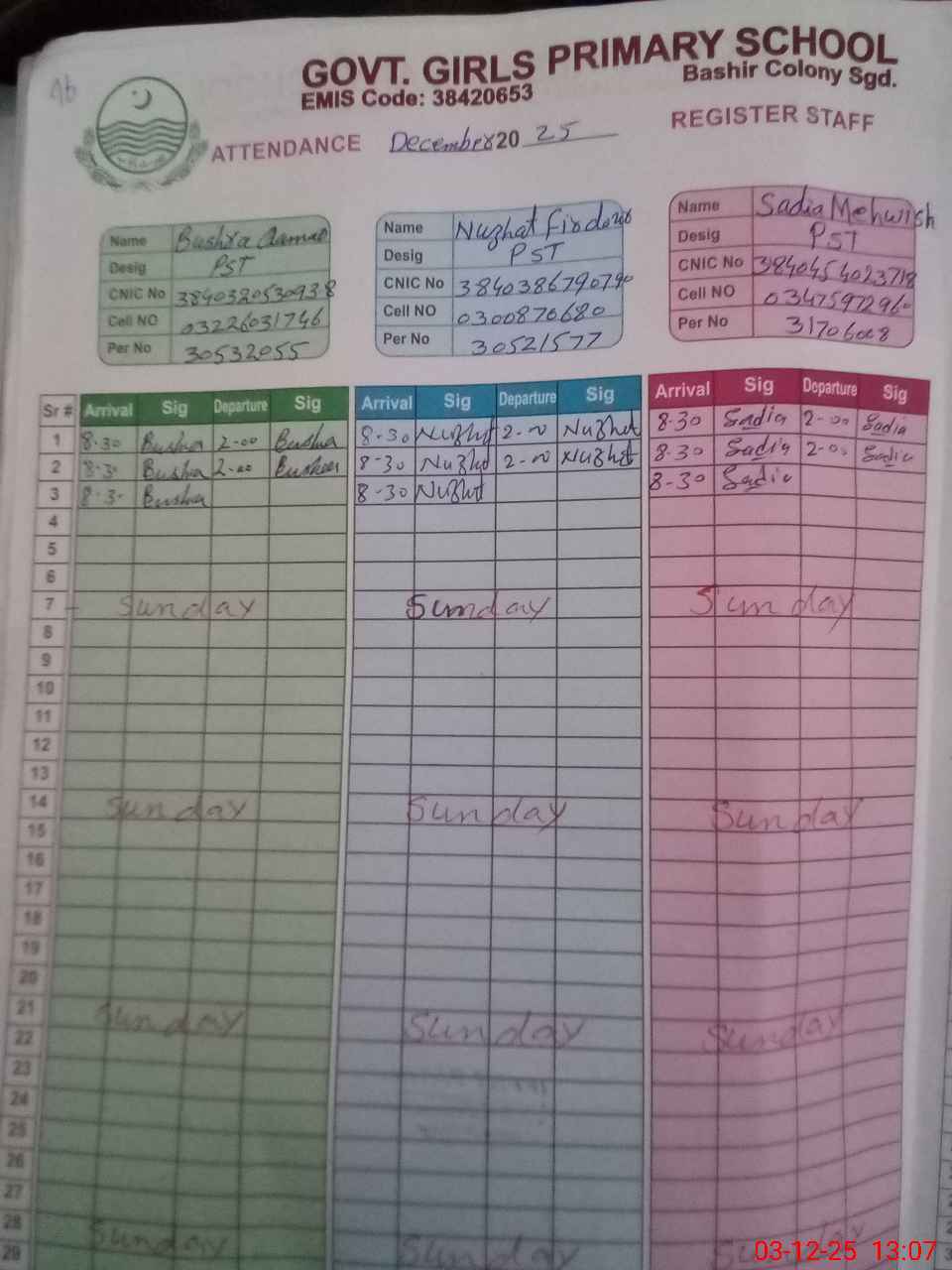 | EMIS Code: 38420653 | Name of School: GGPS BASHIR COLONY SARGODHA | |||