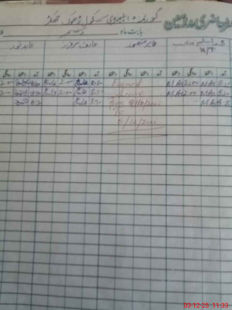 | CNIC | Full Name | Designation | R/C | Absence During Last Calender Month |