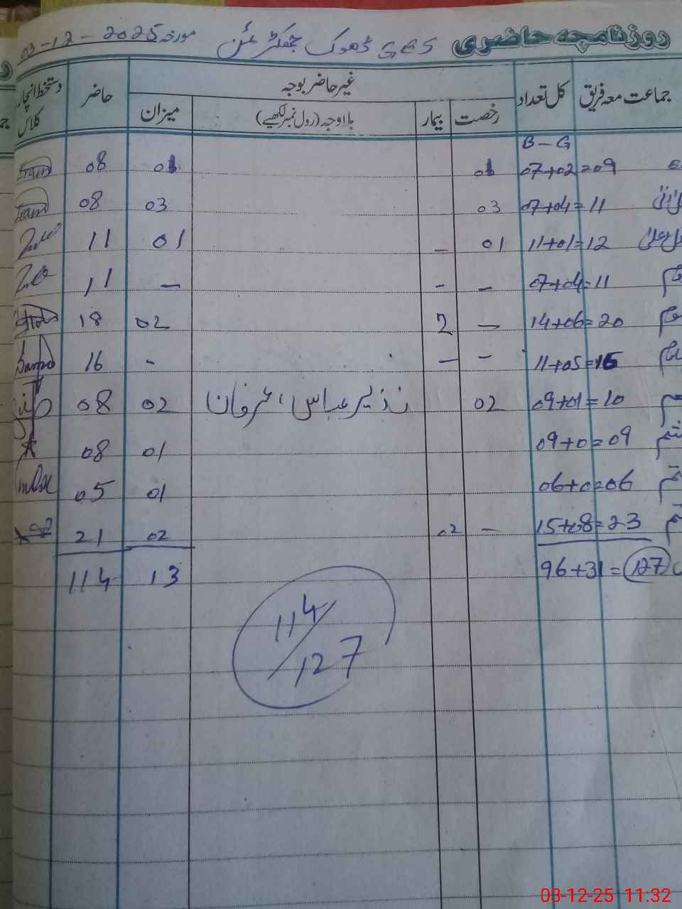 | CNIC | Full Name | Designation | R/C | Absence during last cal. month |